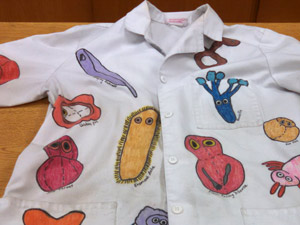 Have your students look at a photograph of a real microbe or cell (or even better through a microscope) and then sketch it on fabric or paper. Use GIANTmicrobes for inspiration and reference. Use arts & craft materials to add cilia, flagella or other cellular details. Of course, it's fun to just sketch and draw any GIANTmicrobes, especially when decorating a shirt or lab coat!