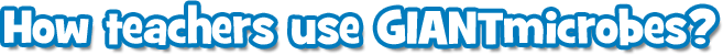 Distribute GIANTmicrobes to each student. This will be their “pet” for a week or month. They research and study their assigned microbe: what it does, how it spreads, how it survives, etc. This research becomes a presentation or report.