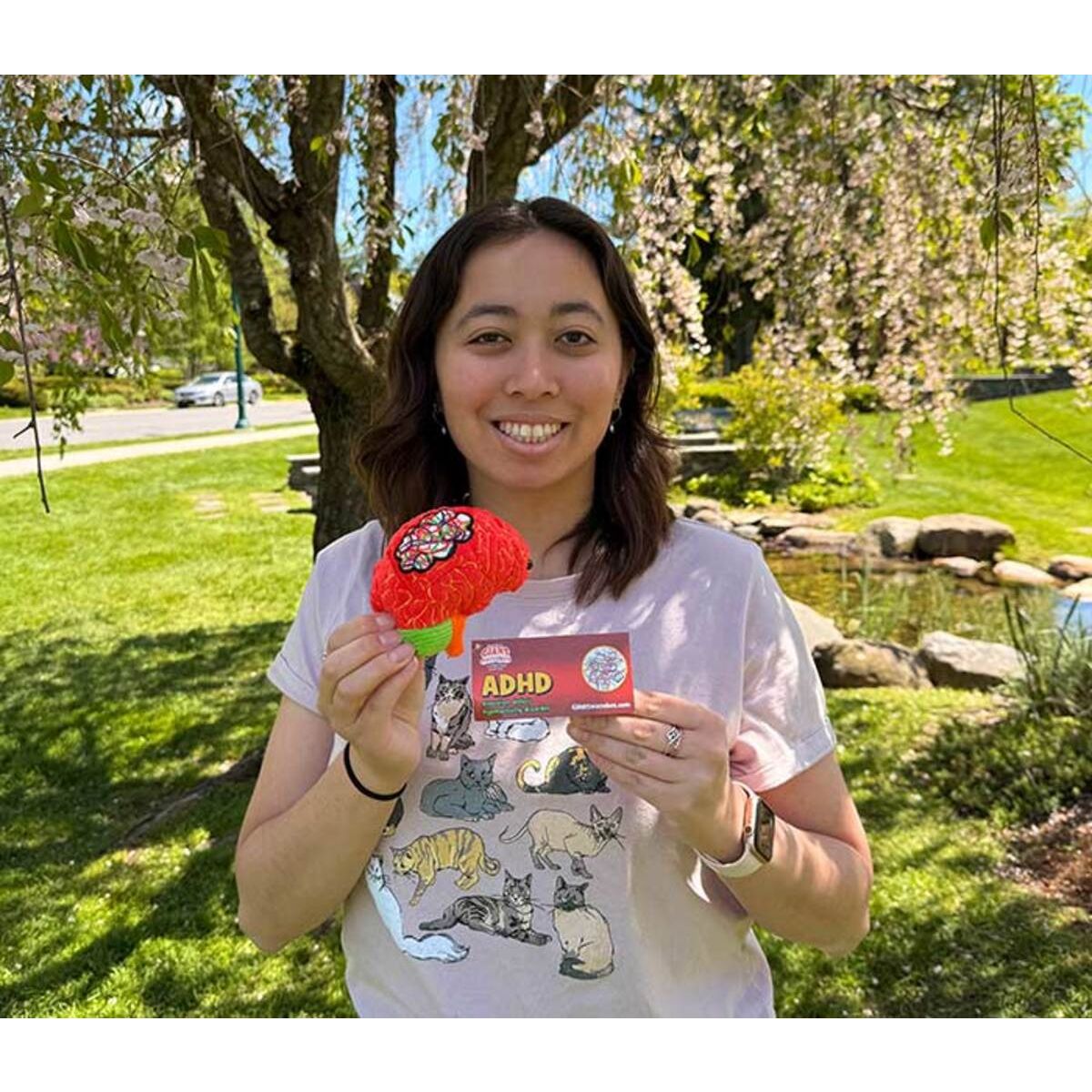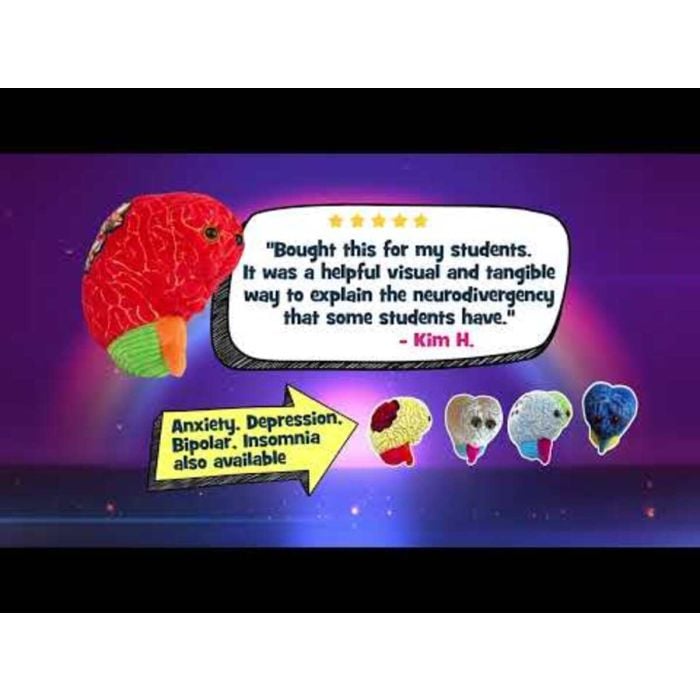 This soft, cuddly representation makes a memorable emotional support and educational gift for loved ones dealing with ADHD. Features a brain with a thought cloud, embroidered details of the cerebrum and cerebellum and includes a printed card with educational facts to help spark discussions.