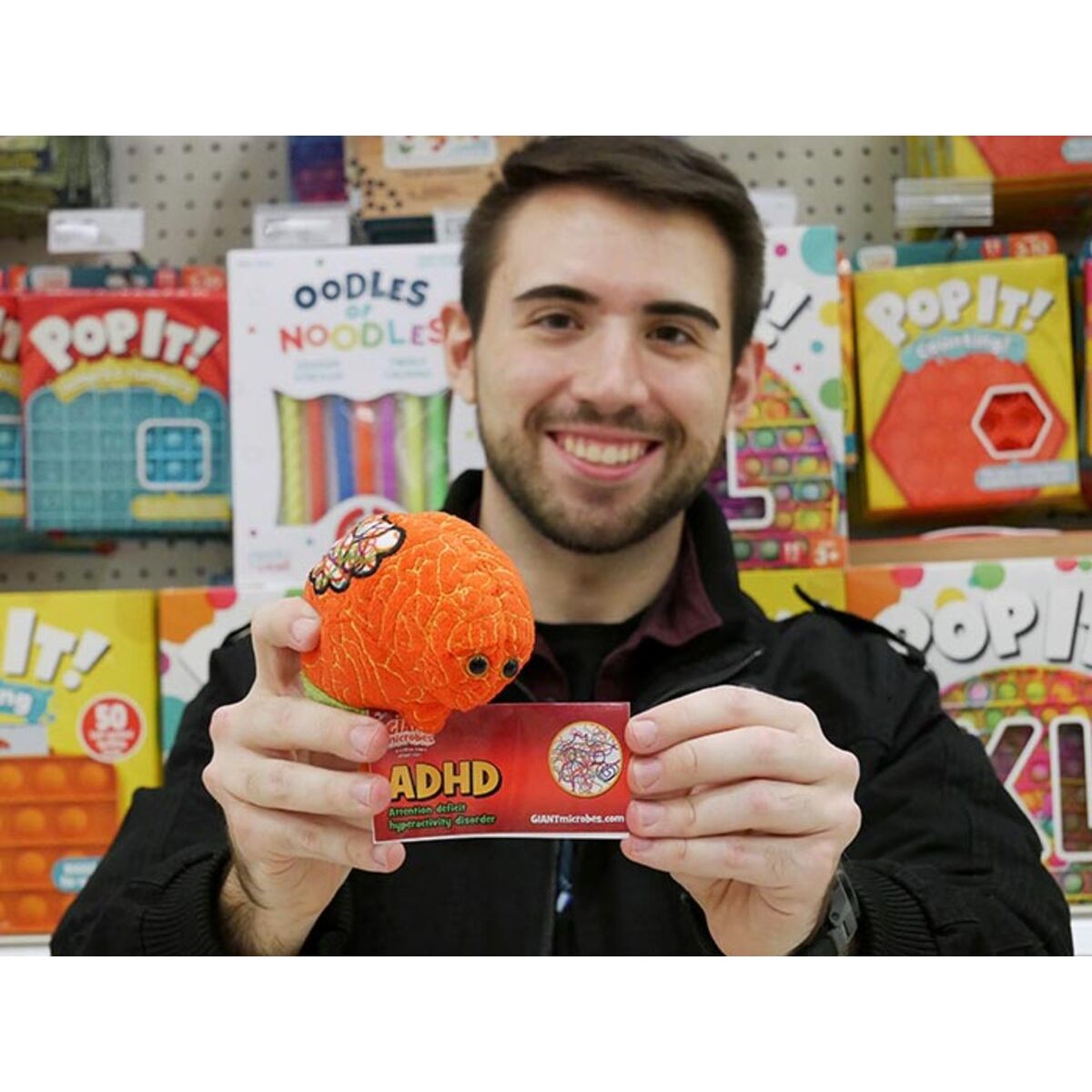 GIANTmicrobes ADHD is a plush representation of Attention Deficit Hyperactivity Disorder. This product helps educate, spread awareness, and encourage discussions about vitally important topics in mental health.