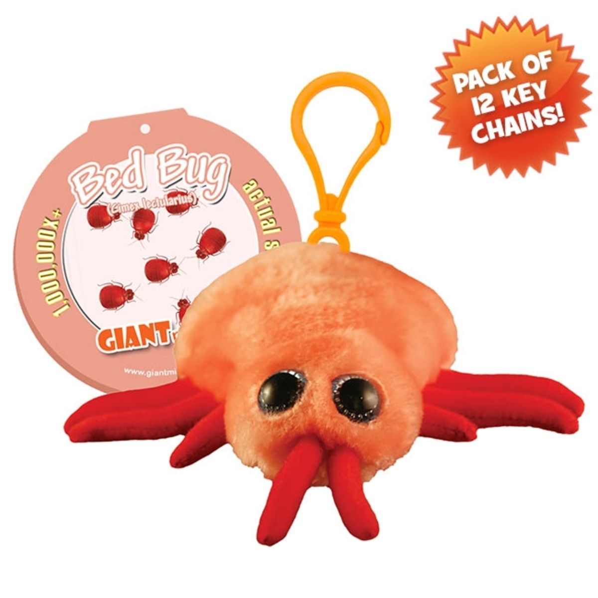 Pack of 12 Bed Bug mini microbes (8cm) with mini-tag and key chain clip.
