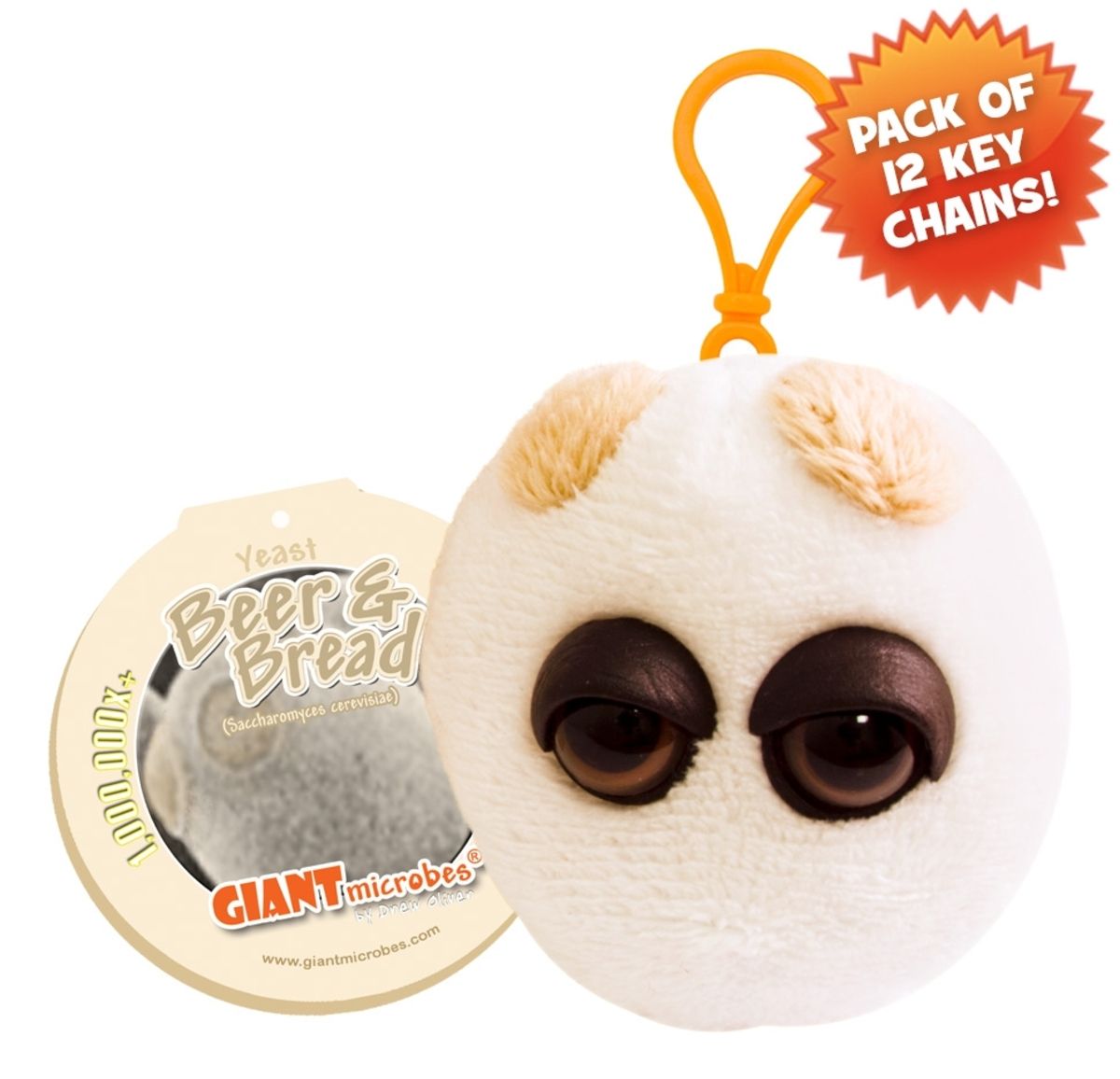 Pack of 12 Beer & Bread mini microbes (8cm) with mini-tag and key ring clip.
