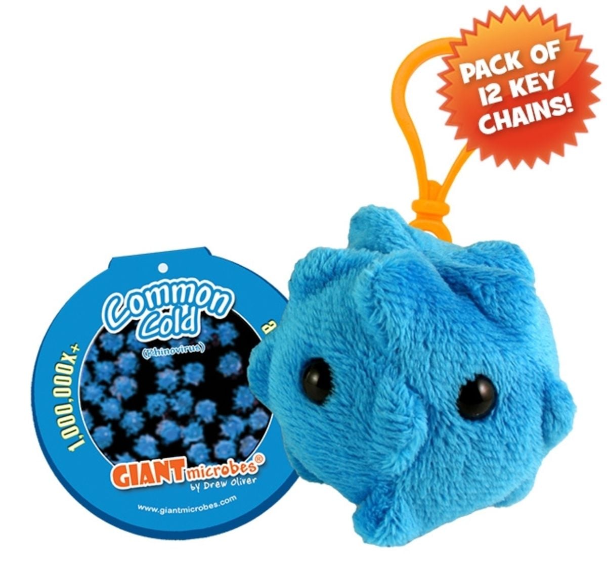 Pack of 12 Common Cold mini microbes (8cm) with mini-tag and key ring clip.