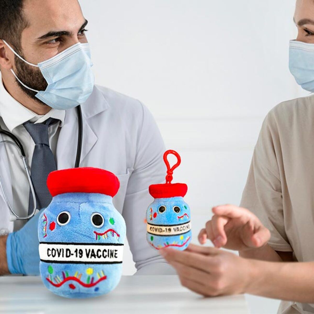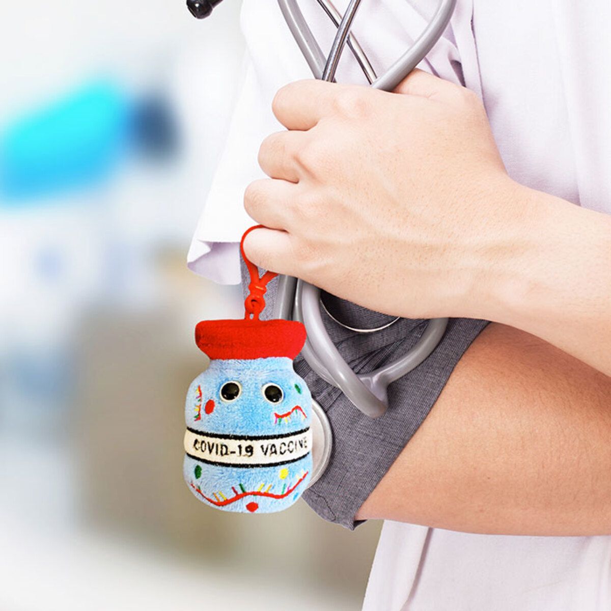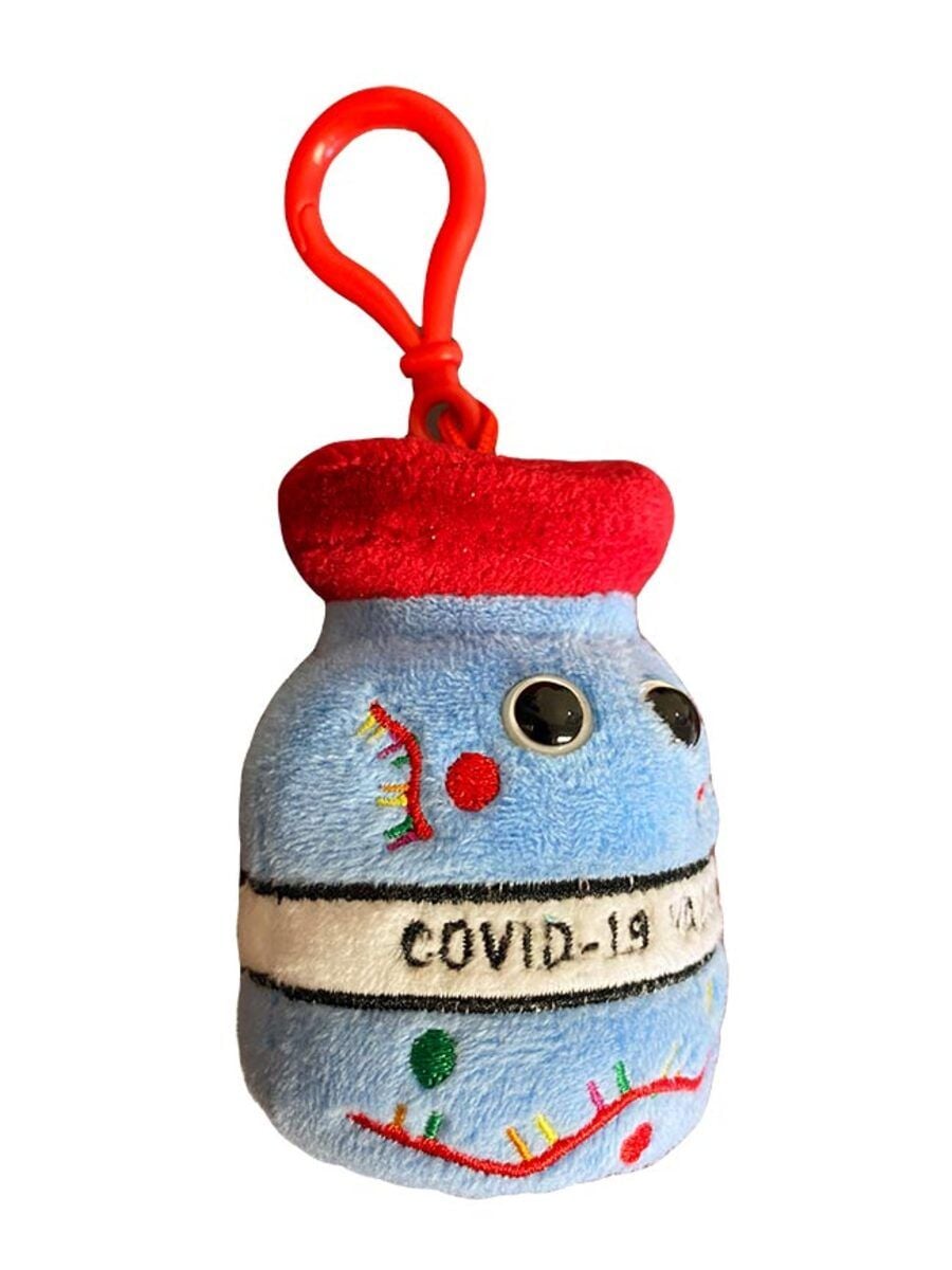 Clip on and take this coronavirus vaccine everywhere you go. This adorable 4" vaccine is the perfect accessory for your clothing, backpack, keys, bag or to hang up anywhere in your world!