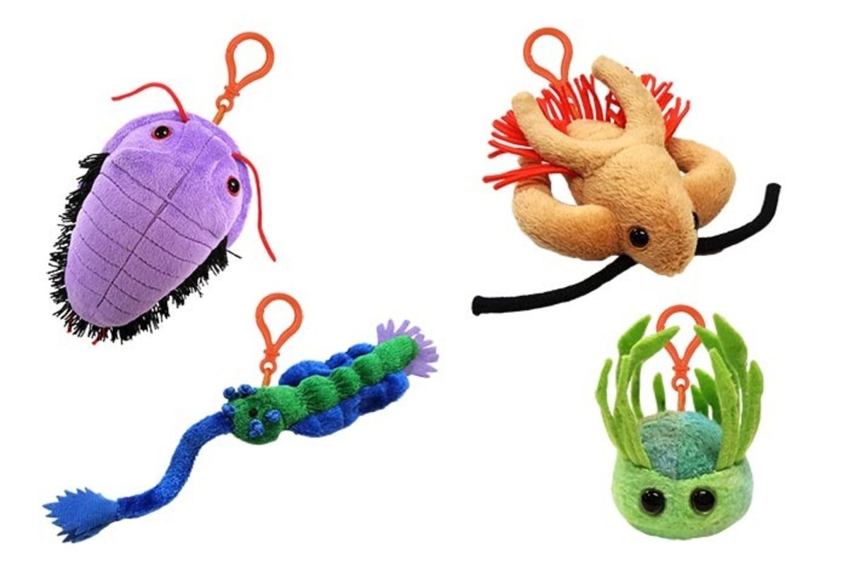 Cambrian Creatures 4-pack includes these minis with key ring clip: Trilobite, Marrella, Opabinia and Wiwaxia. Clip on anywhere!