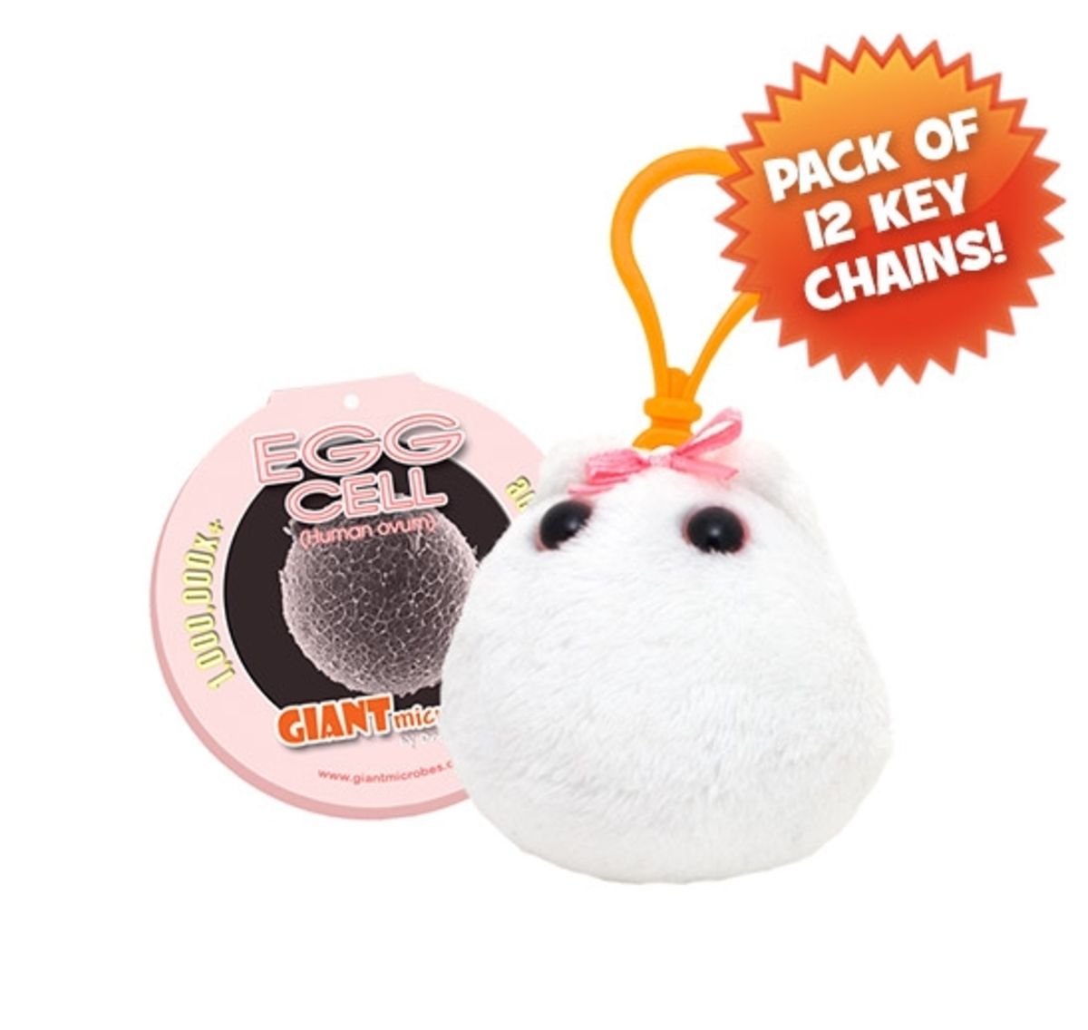 Pack of 12 Egg Cell mini microbes (8cm) with mini-tag and key ring clip.