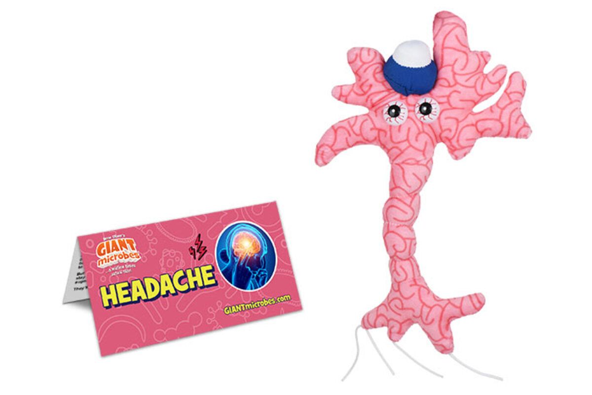 Our Migraine Headache plush is modeled after a real neuron brain cell, complete with a printed swirling brain pattern, bloodshot eyes and an ice pack on its head for comic relief. Soft, unique and scientifically inspired, this plush brings awareness to the challenges of living with chronic pain.
