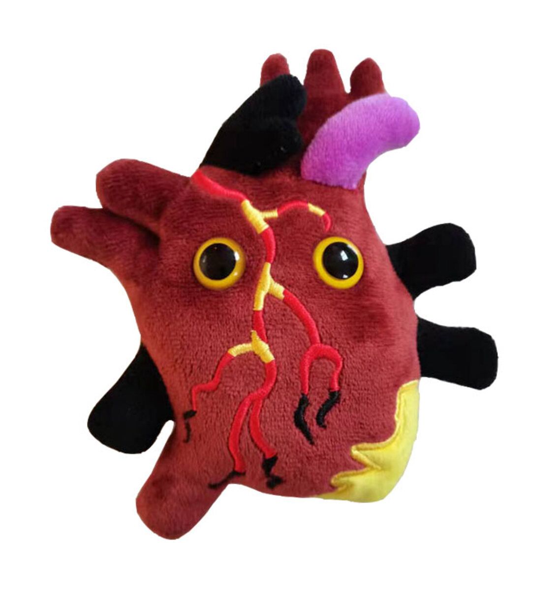 This plush representation of Heart Disease provides a unique, hands-on-way to learn about heart health, heart attacks, strokes and other types of heart disease. Spread awareness about this leading cause of death. Over 500 million people suffer from cardiovascular disease. This plush will get people talking about heart health.