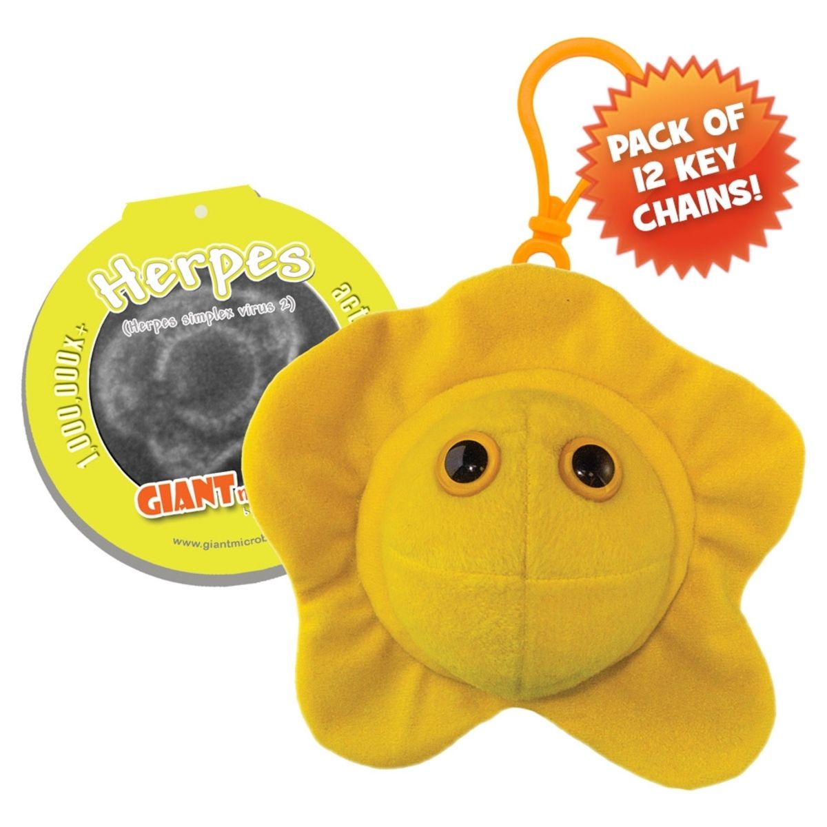 Pack of 12 Herpes mini microbes (8cm) with mini-tag and key ring clip.