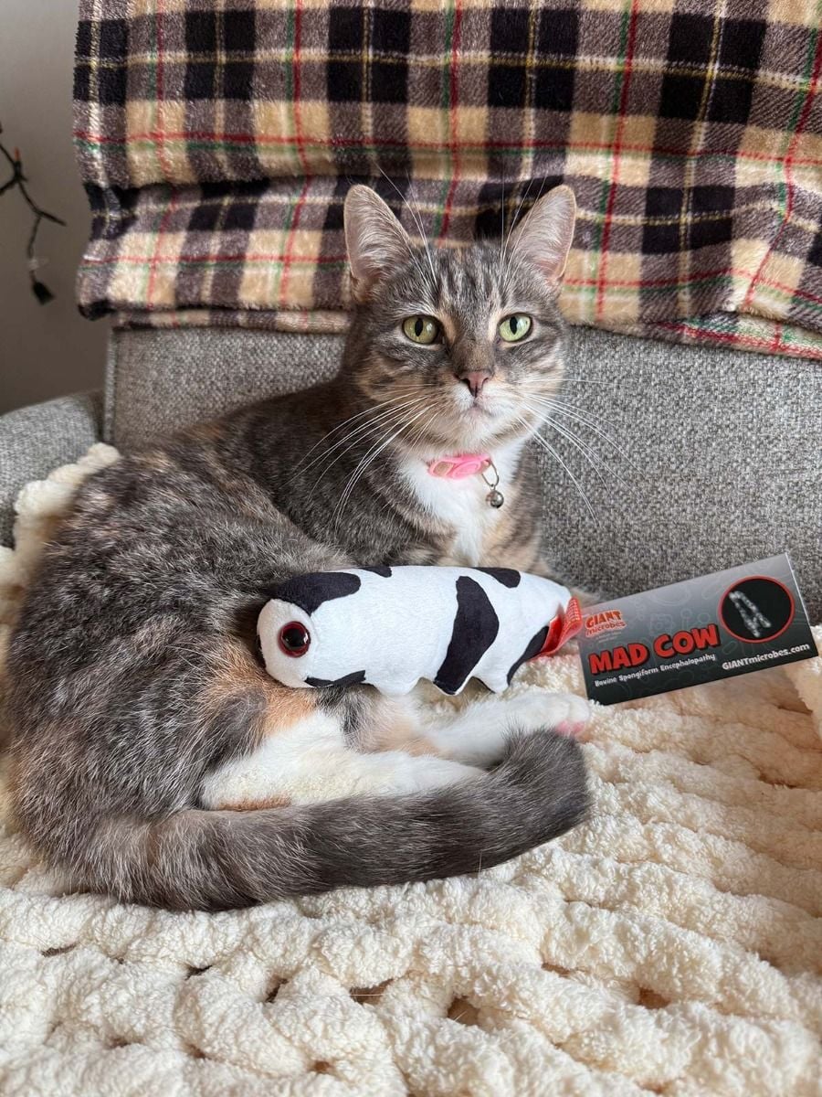 When bovine prions stampede the wrong way, everyone says Moo! Memorable plush representation of Mad Cow disease is the perfect gift for friends, family, educators, scientists, public health professionals, veterinarians, and anyone with a healthy sense of humor.