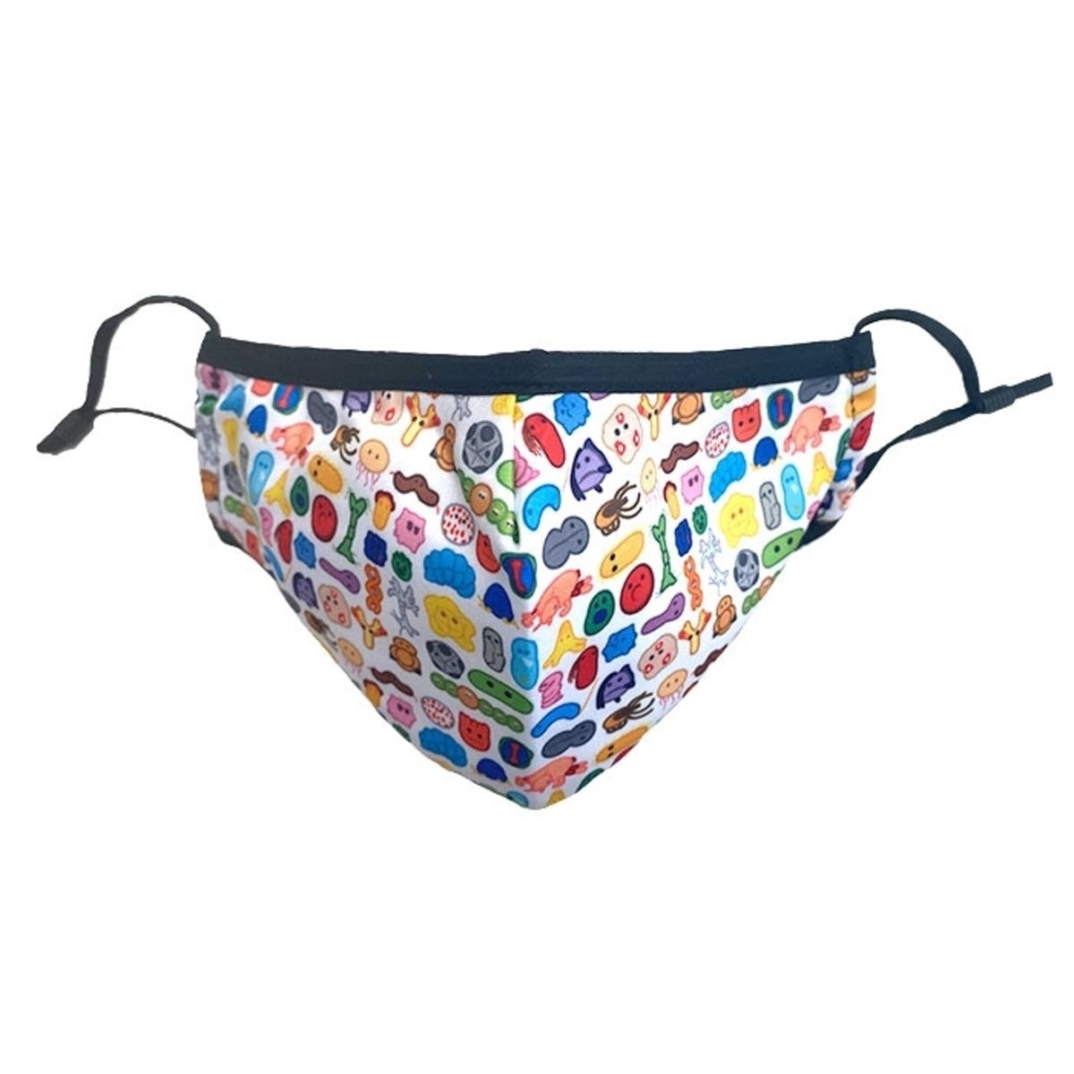 Decorated with your favorite GIANTmicrobes, this colorful face mask will help keep you safe, healthy and engaging with the world in style. The mask is reusable and soft with a contoured shape for a comfortable snug fit. Sized at 9" x 5.5" with fully adjustable straps to fit women, men and children. The mask has 2 layers of fabric to protect against dust, pollen, powders, microbes and other common airborne irritants.