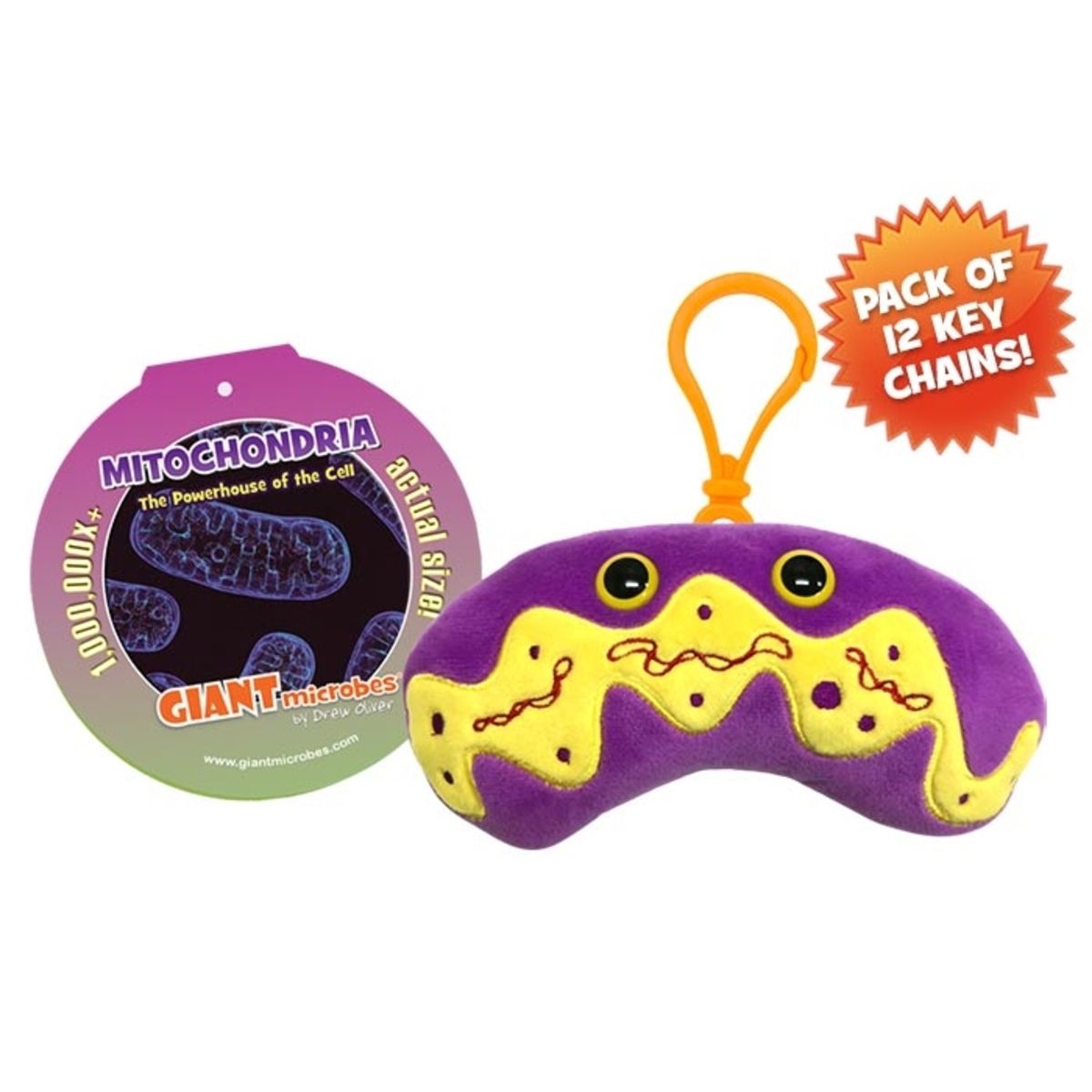 Pack of 12 Mitochondria mini microbes (8cm) with mini-tag and key ring clip.