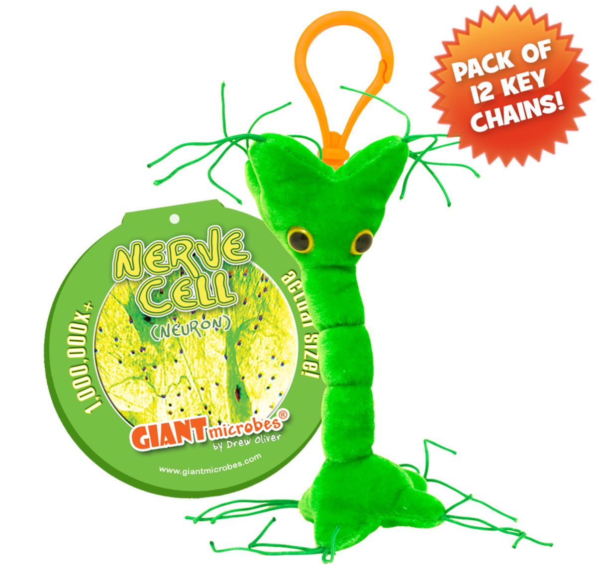 Pack of 12 Nerve Cell mini microbes (8cm) with mini-tag and key ring clip.
