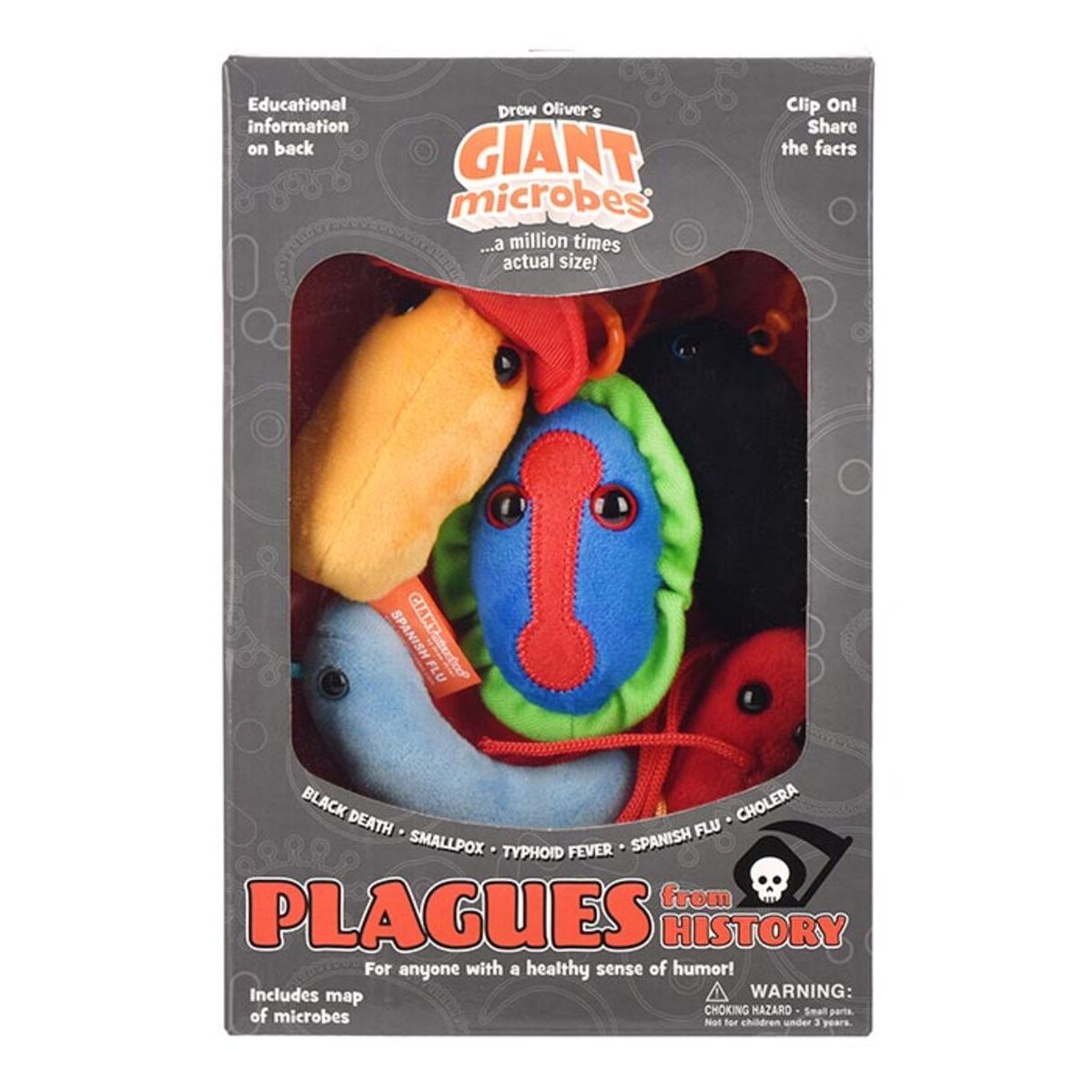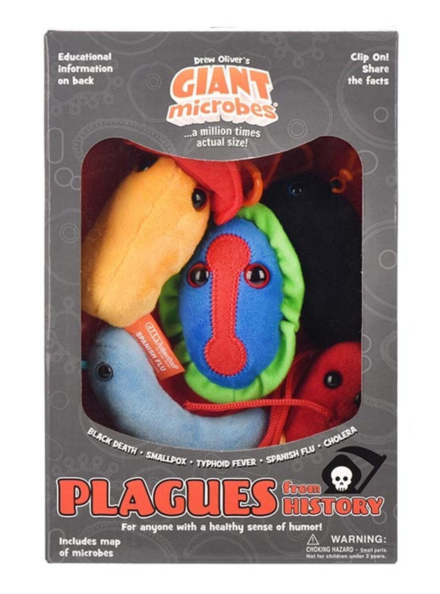 Plagues From History themed gift box includes these mini microbes: Smallpox, Black Death, Cholera, Typhoid Fever and Spanish Flu.