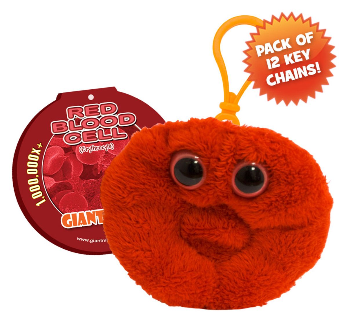 Pack of 12 Red Blood Cell mini microbes (8cm) with mini-tag and key ring clip.