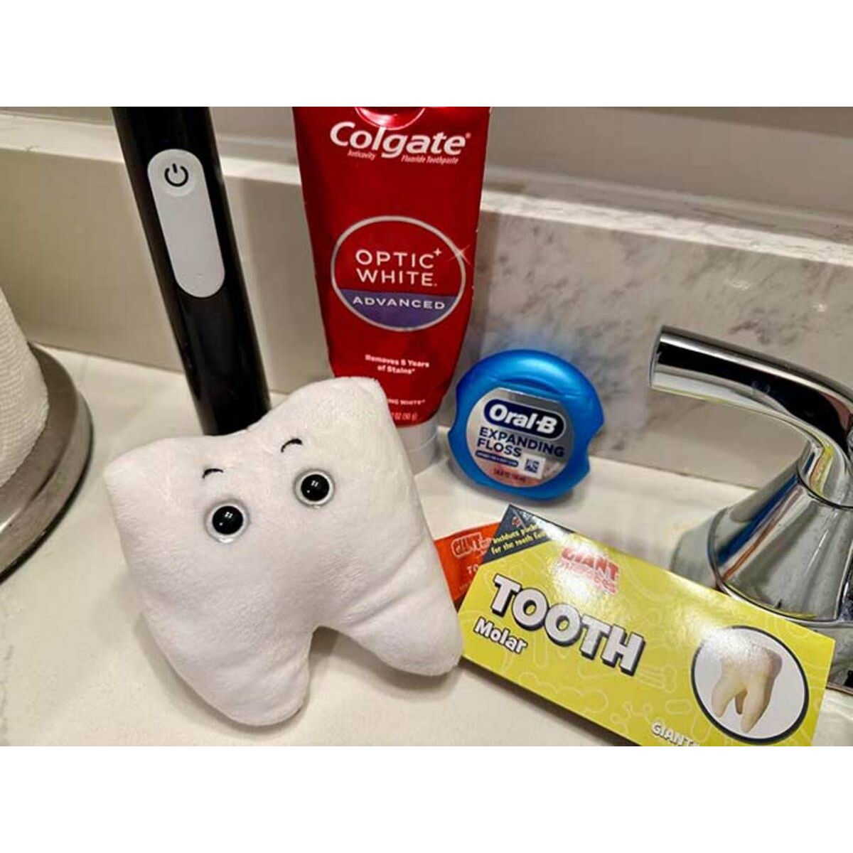 This adorable, fun plush representation of a Tooth provides a hands-on-way to learn about the importance of dental hygiene, brushing and your health.A memorable and educational gift for friends, family, dentists, dental hygienists, educators and anyone who could use a reminder to brush and floss.