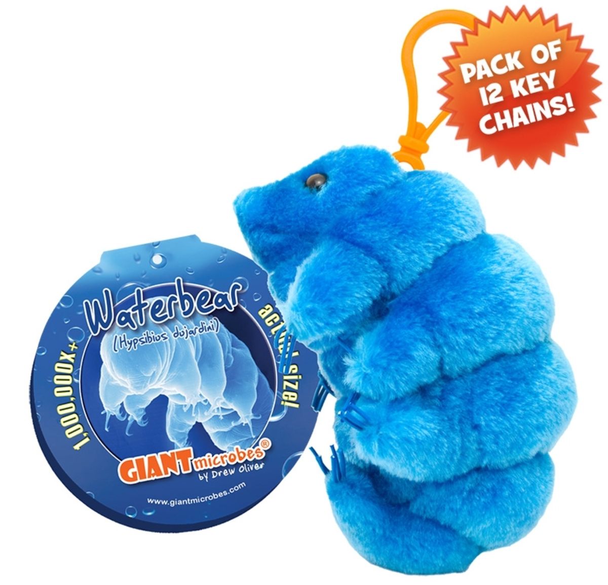 Pack of 12 Waterbear mini microbes (8cm) with mini-tag and key ring clip.