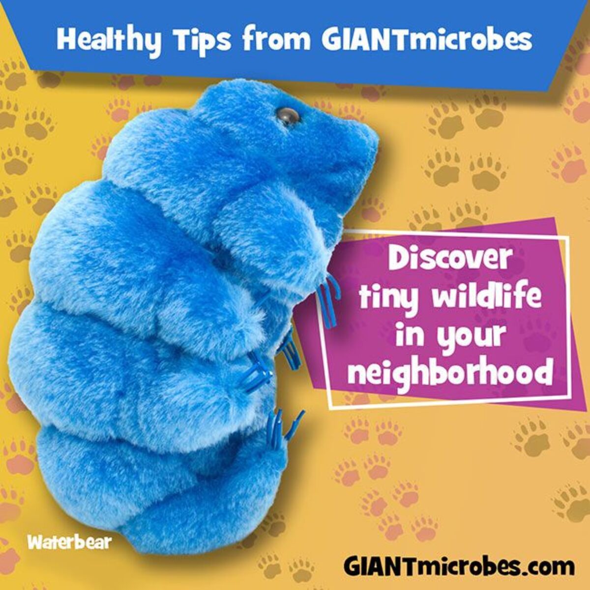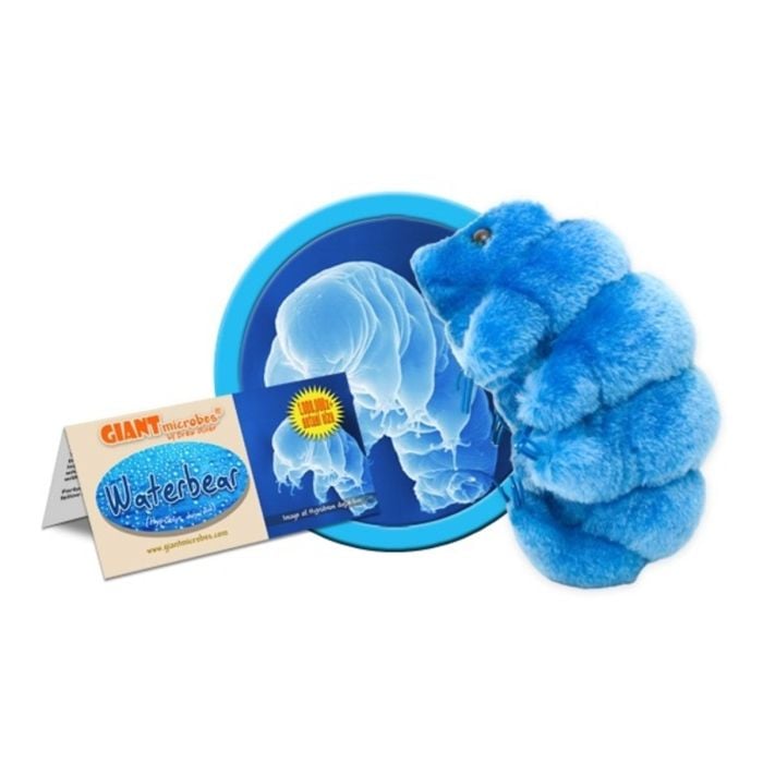 This tiny animal called waterbear, moss piglet or tardigrade, can hibernate for decades before coming back to life. They can even survive in the vacuum of outer space! GIANTmicrobes Waterbear is soft, cuddly and provides a fun hands-on-way to learn about microscopic life, nature and biology.