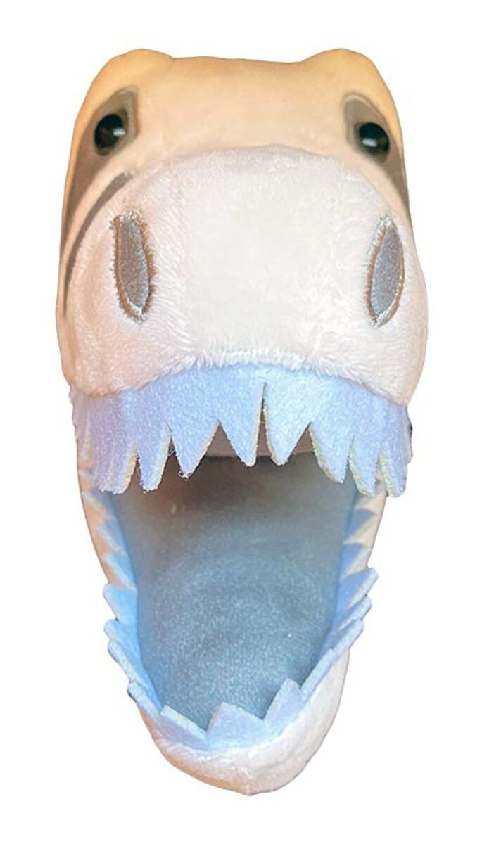 Open mouth design features T. Rex Roaring with fearsome teeth!
