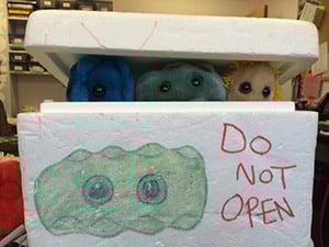 Great activity for young kids. Create a "danger box" and keep the common cold, stomach ache or other nasty germs contained in this box. Put on gloves when you bring them out, so you don't get infected. Show your students that hand-washing and hygiene are important if they don't want to catch these bad guys!