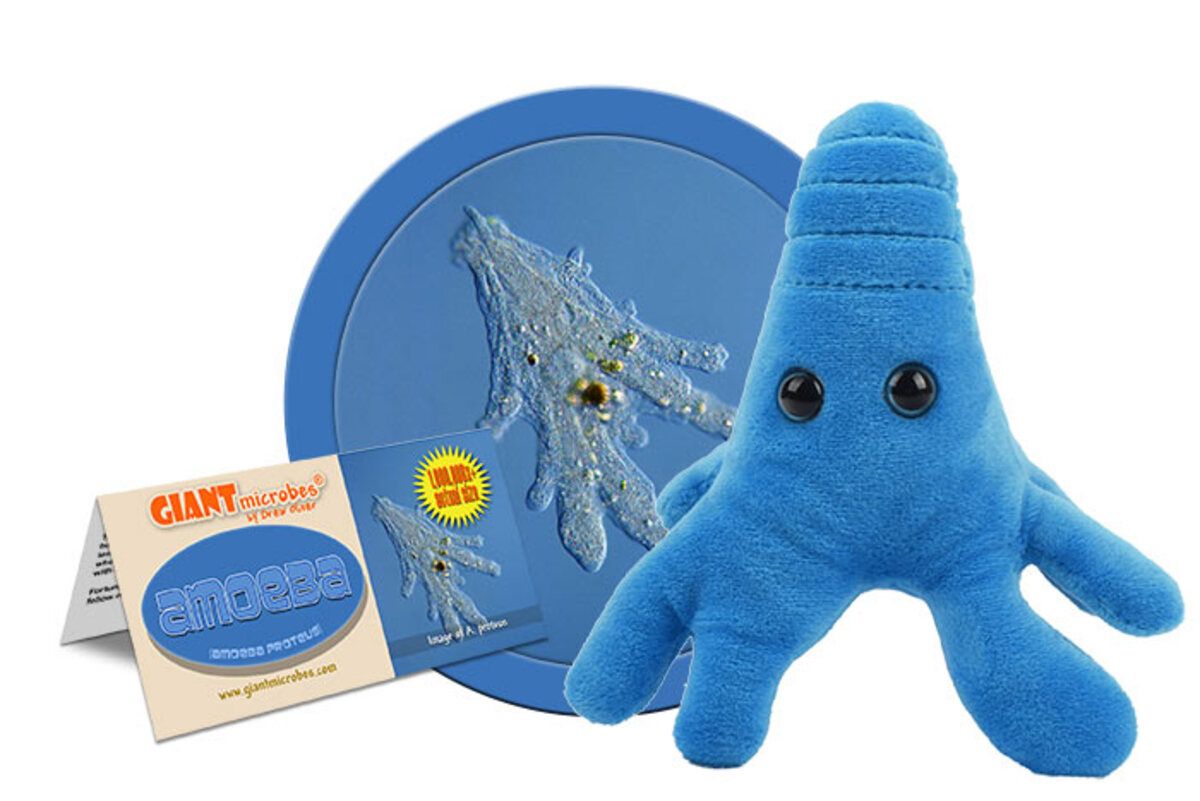 Amoebas are wonderful microscopic organisms that constantly change shape and color as they explore and engulf their environment. GIANTmicrobes Amoeba is soft, cuddly and provides a fun hands-on way to learn about microscopic life, nature and biology.