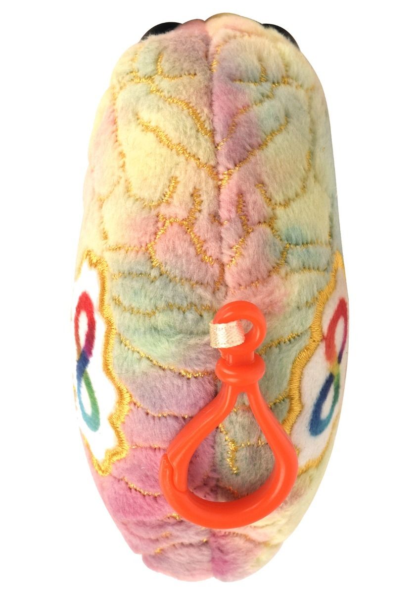 This soft, cuddly product makes a memorable emotional support and educational gift for friends and loved ones. Features a brain with double-sided rainbow infinity sign inside a gold-lined thought cloud and embroidered details of the cerebrum and cerebellum. Includes a printed card with educational information.