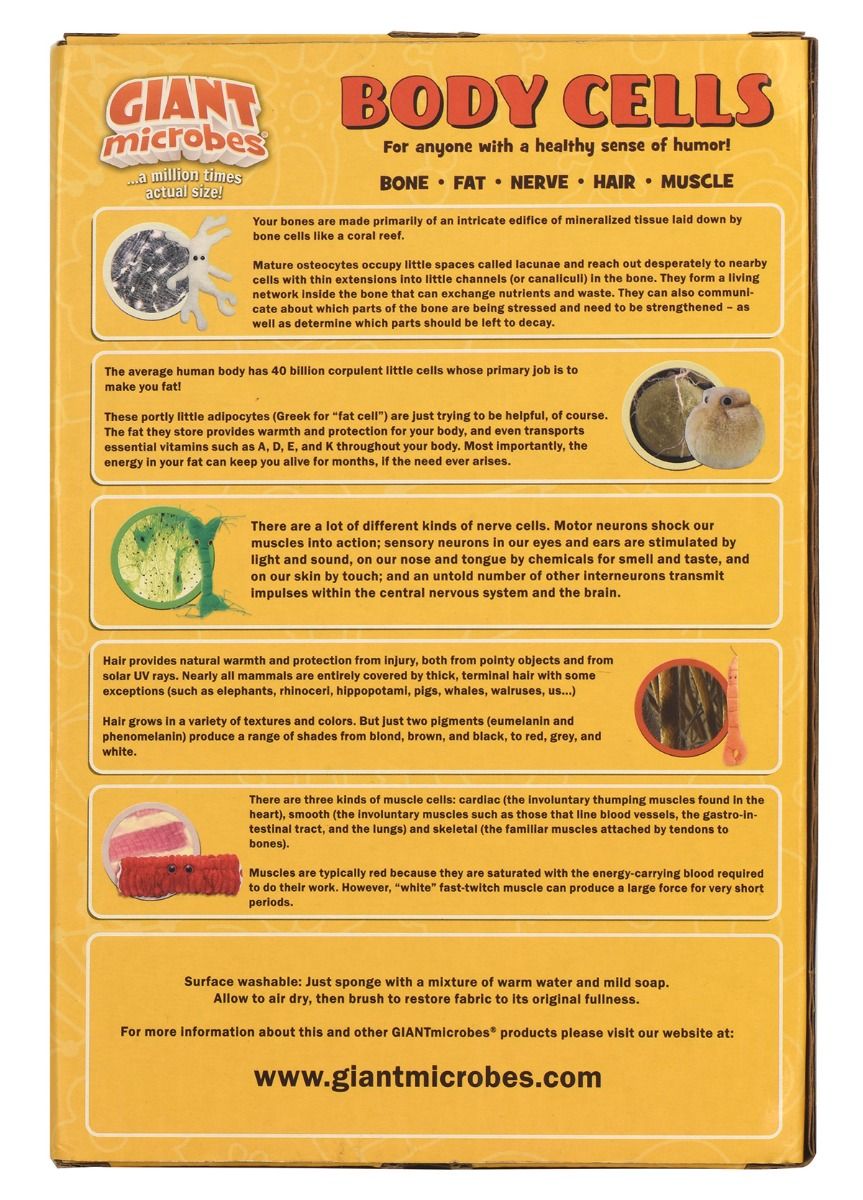 Body Cells themed gift box includes these mini microbes: Bone Cell, Fat Cell, Nerve Cell, Hair, and Muscle Cell.