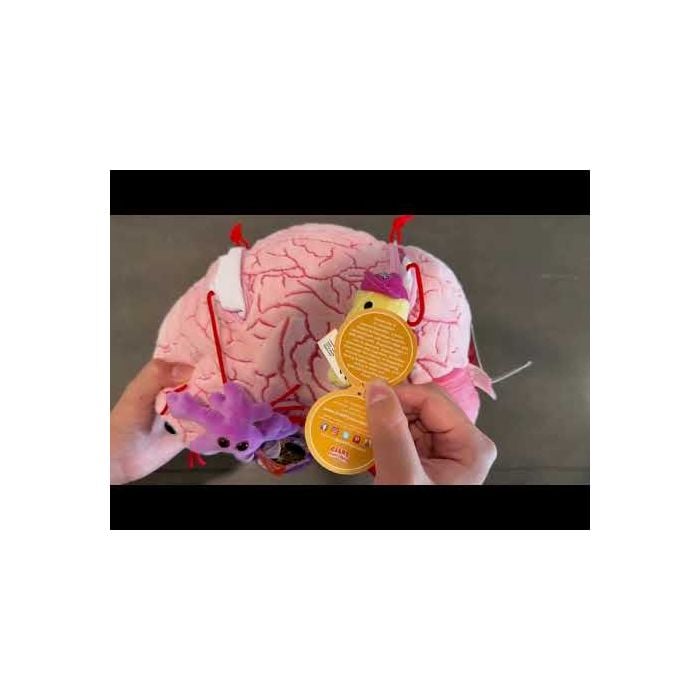 Features giant deluxe brain with zippered pockets that hide and contain 4 plush 3" GIANTmicrobes: Neuron, Glial Cell, Dopamine and Serotonin.