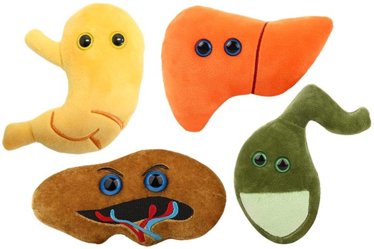 Explore the wonders of the human digestive system with the GIANTmicrobes Digestion Deluxe 4-Pack. This science-inspired plush bundle features four essential organs: Stomach, Liver, Gallbladder, and Spleen. Each soft, anatomically inspired plush is based on real human anatomy and includes educational information to help kids, students and science lovers learn how the body digests and processes food.