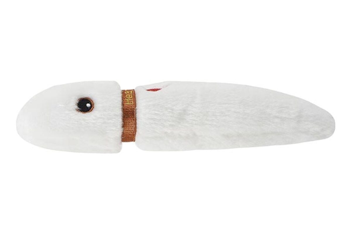 This plush is inspired by Dirofilaria immitis - the parasitic roundworm transmitted by mosquitoes that can grow up to a foot long inside a dog’s heart, lungs and blood vessels. It’s a real threat to pet health, but early detection and monthly preventatives can stop heartworm disease in its tracks.