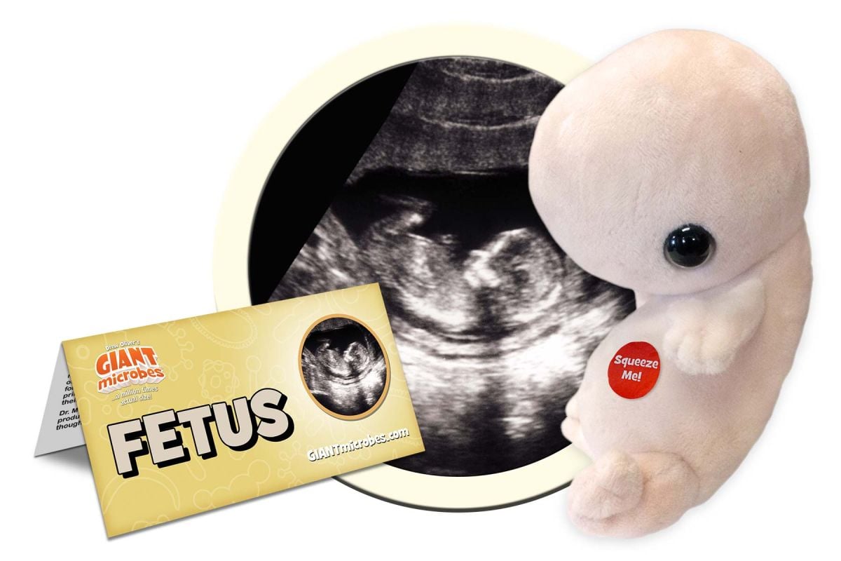 Squeeze the tummy of our fetus and see and hear its glowing little heart beat!