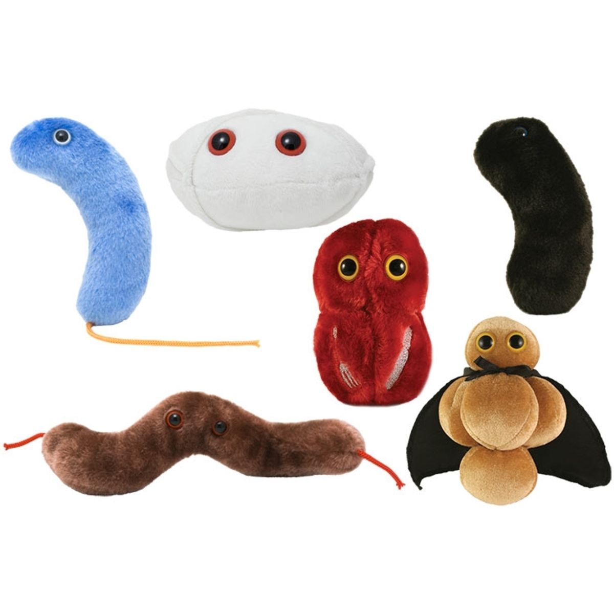 Our Deadly Bacteria 6-pack includes original size (5 - 8") Cholera, Black Death, Flesh Eating, Diarrhea, MRSA and Anthrax.