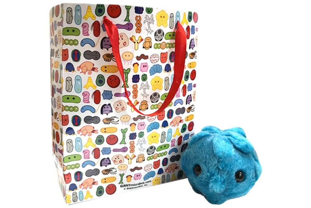 This gift bag holds up to 5 regular size GIANTmicrobes or a themed box of mini microbes such as Blood Cells, Sick Day or Tainted Love.