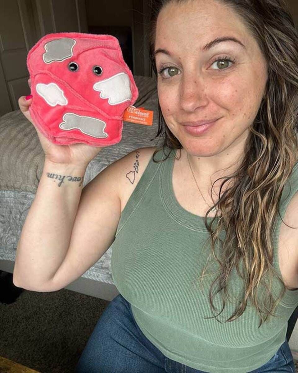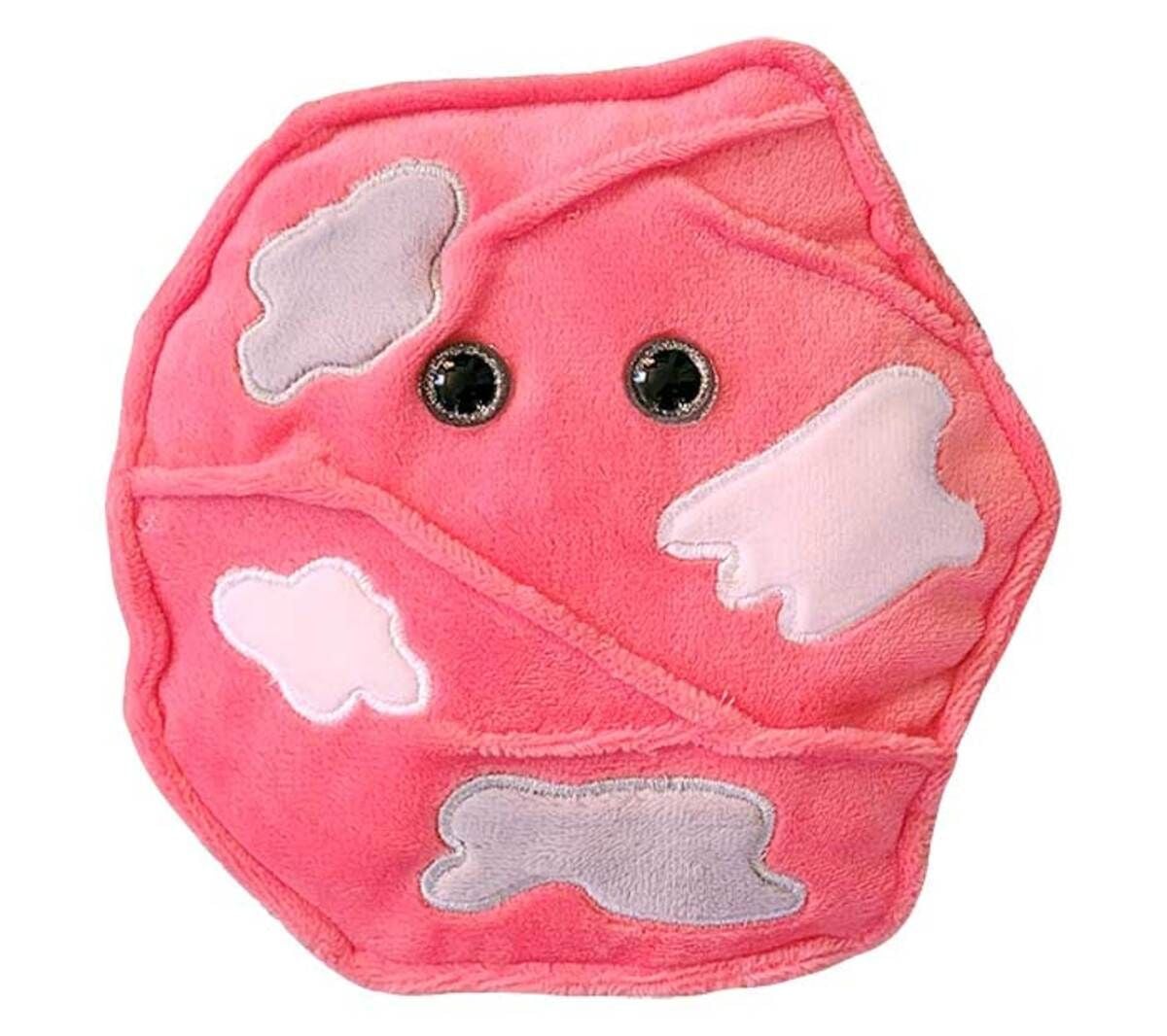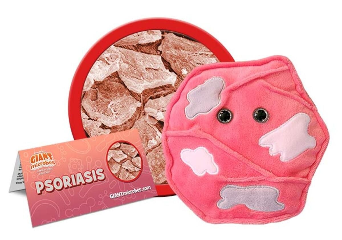 Our Psoriasis plush brings skin health to life with a design based on real skin cells affected by psoriasis. Featuring soft plush with textured dry patches, it's a unique way to explore this autoimmune condition and its impact on the body.