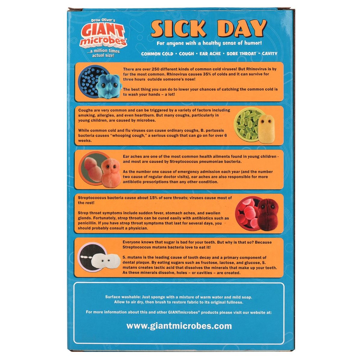 Sick Day themed gift box includes these mini microbes: Common Cold, Cough, Ear Ache, Sore Throat, and Cavity. Light-hearted learning tool and get well soon gift for a sick person and for wishing a speedy recovery.