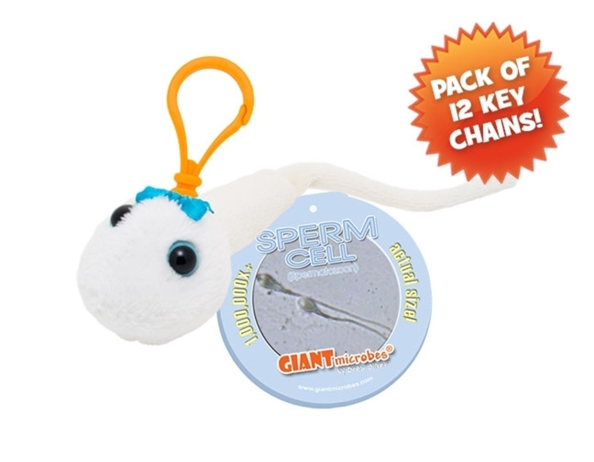 Pack of 12 Sperm Cell mini microbes (3") with mini-tag and key chain clip.