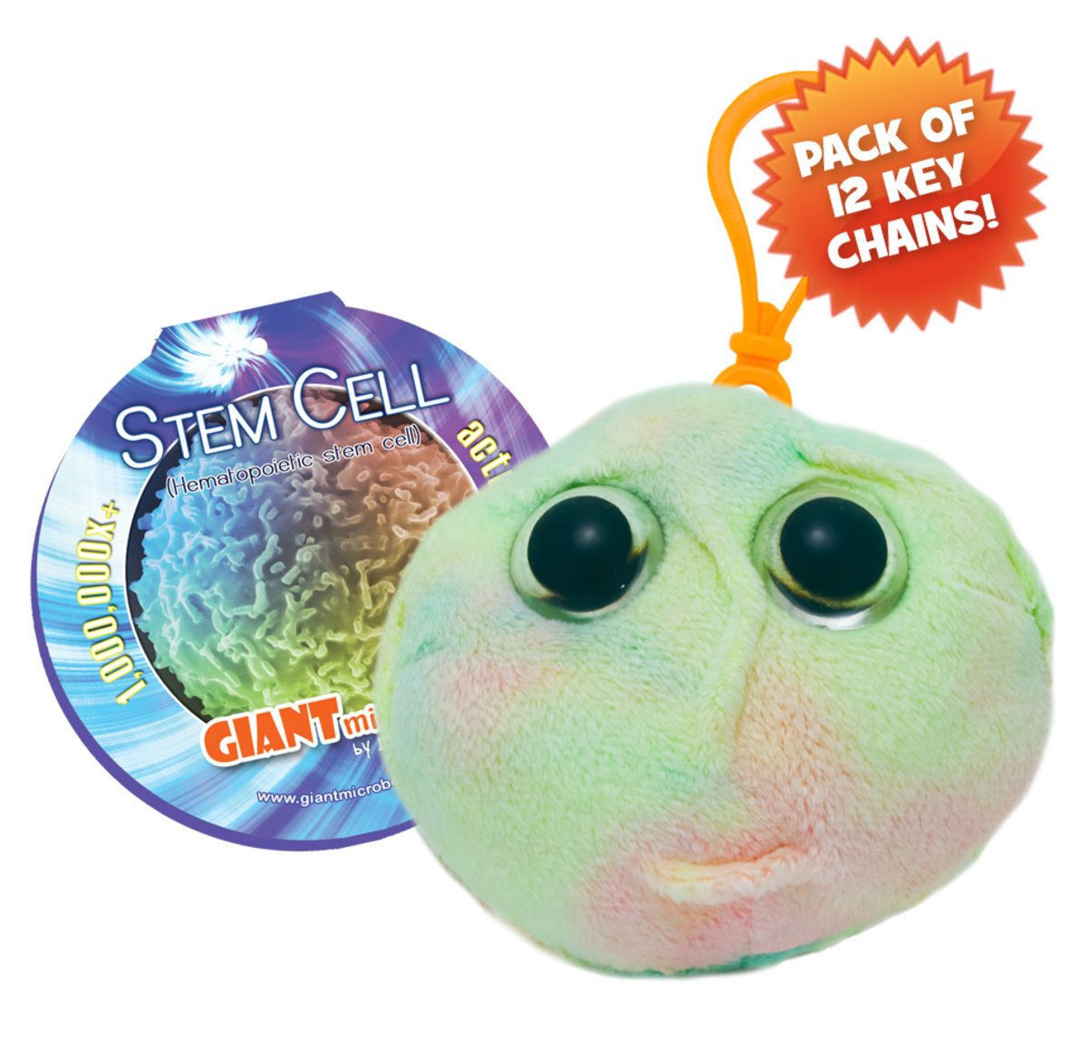 Pack of 12 Stem Cell mini microbes (3") with mini-tag and key chain clip.