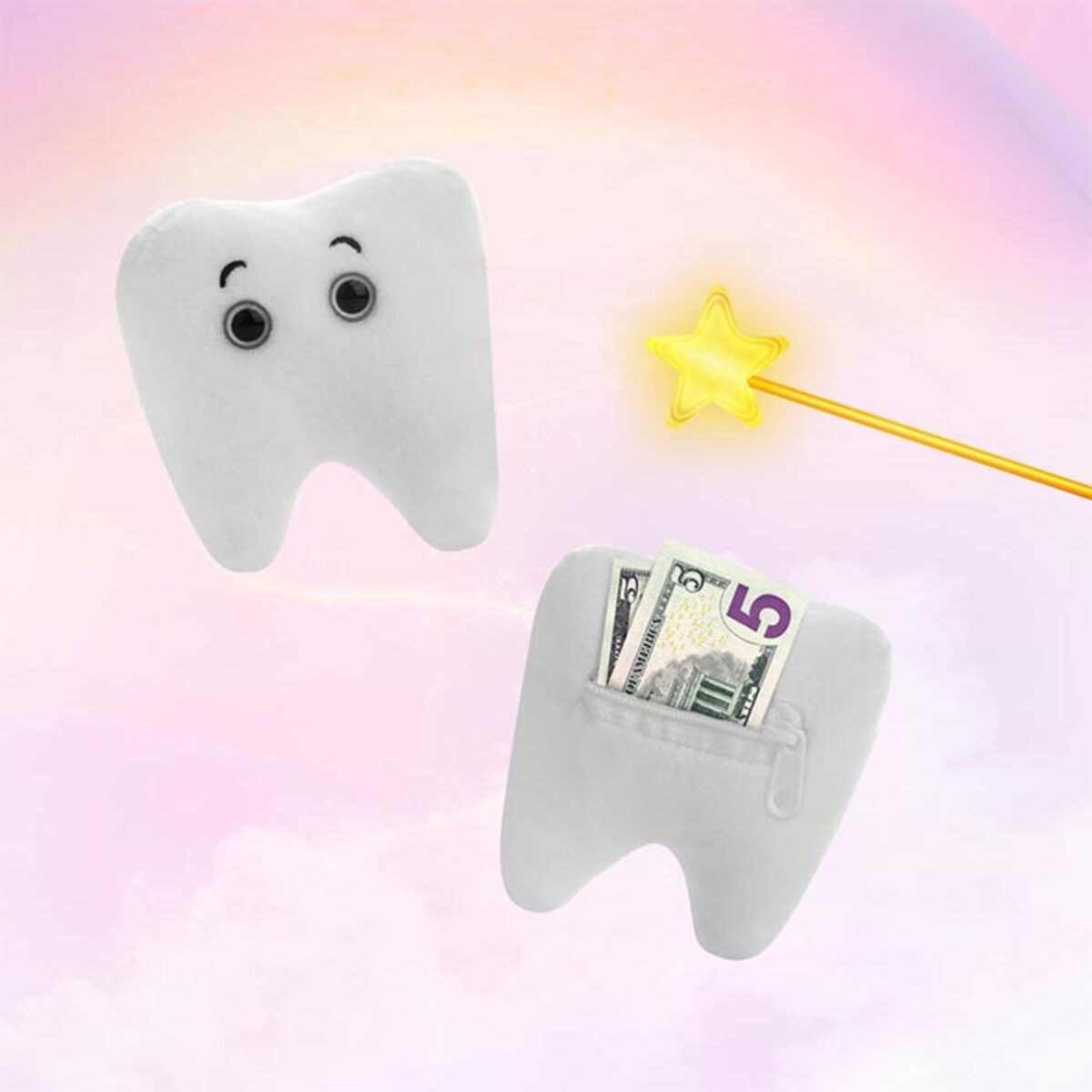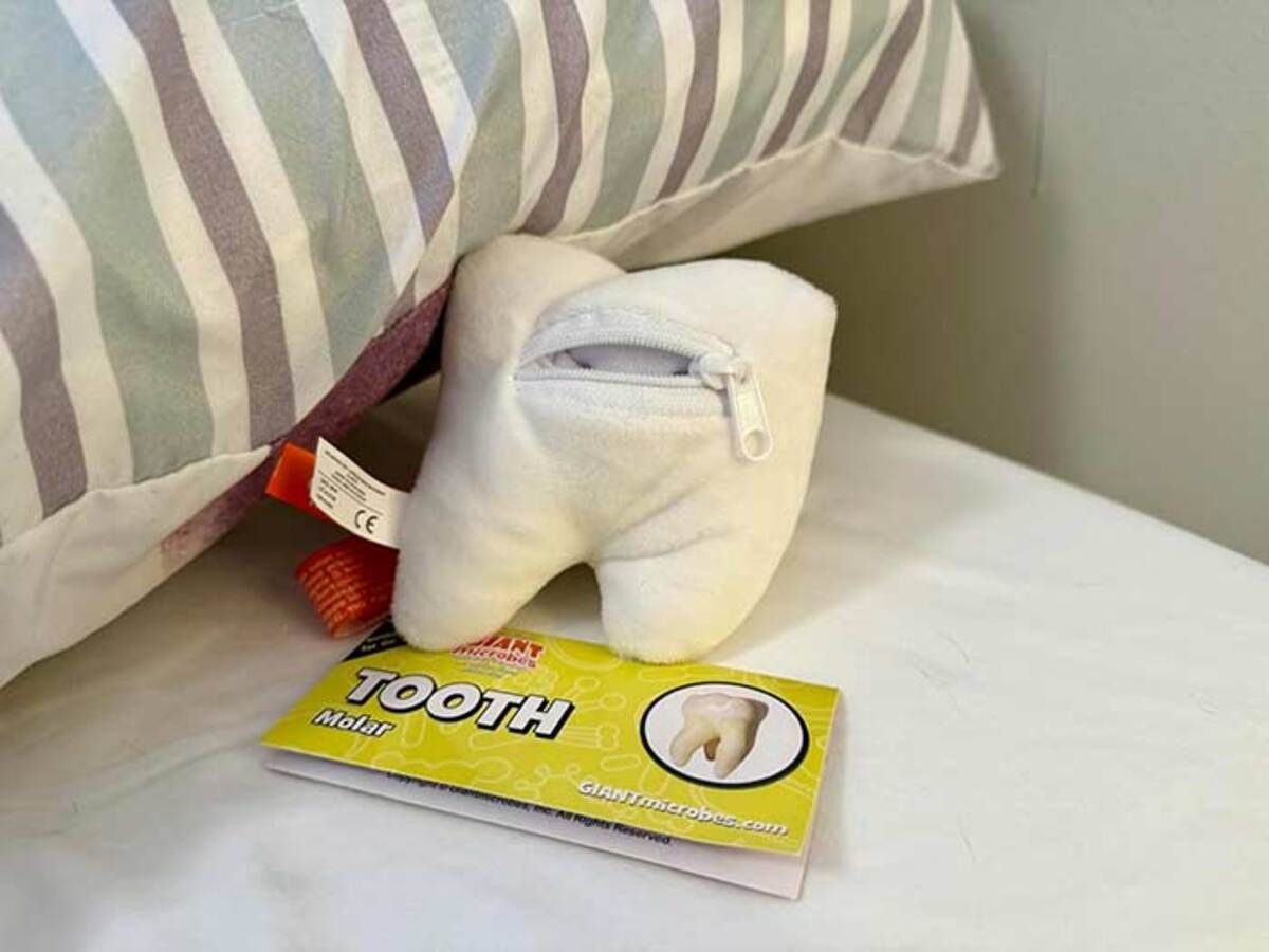 Zippered pocket included! This cuddly tooth has a zippered pocket where your child can put baby teeth for the Tooth Fairy’s visit. Includes an educational card with fun facts about Teeth!