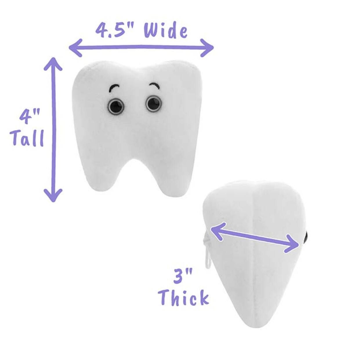 This adorable, fun plush representation of a Tooth provides a hands-on-way to learn about the importance of dental hygiene, brushing and your health.A memorable and educational gift for friends, family, dentists, dental hygienists, educators and anyone who could use a reminder to brush and floss.