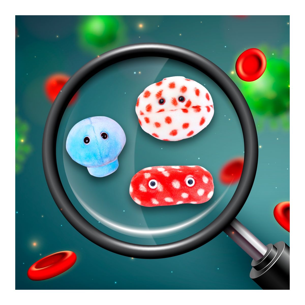 Packaging | Each plush microbe includes a printed card with fun, educational and fascinating facts about the actual microbe or cell. |